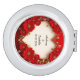 Heart-Shaped Red Floral Frame with Glitter Compact Mirror