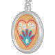 I chose gold plated so that the metal would not react with my skin oils and perspiration. But, I changed the necklace from the gold plated one to a sterling silver. My skin cells will tarnish the silver. But it will not look as bad if some portion of the gold plated necklace somehow became compromised. Zazzle did a find job turning the picture into a pendant for me. As you can see, the colors and the printing of the final product, match the preview. The picture I took is not very clear. But I am pleased with the product I received.