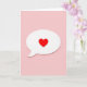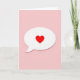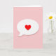 This card shows a white speech bubble with rounded edges, raised slightly like a soft cutout, floating over a blush pink background. Centered inside the bubble is a single deep red heart ❤️, like a quiet message sent straight from one person to another. The gentle shadows around the bubble give it a light, airy lift, as if it’s hovering just above the page. With no characters present, the heart becomes the “speaker,” hinting at a tender exchange—something you might text when you’re thinking of someone 🥰. There’s no extra scenery, so your eyes stay on the simple pairing of “say” and “love,” making the moment feel intimate and direct. Any text would sit neatly below the bubble in a small, soft gray line, leaving the heart as the main focus. The overall palette stays calm and sweet, with blush pink filling the full background and the white bubble framing the red heart at the center.