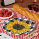 Heart Sunflower Ladybug on Buffalo Plaid Paper Plates