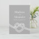 Plain white envelopes are included with paper invitations and will come to fit the invitation size you select. If you don’t need the envelopes, you may choose to not receive them by selecting the dropdown below "Envelopes" and choosing "None." If you’d like to have a design on your envelopes, you can browse all of these available envelopes to find the design that complements your Heart Tie The Knot Wedding Grey White Invitation.