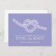 Simple modern graphic sketch heart shaped tying the knot wedding save the date postcard in purple and white. Tying the knot is classic symbol to show the union of two into one intertwined lasting unity. Simple knot sketch graphic and design by Sarah Trett www.sarahtrett.com for www.mylittleedenweddings.com