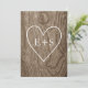 Plain white envelopes are included with paper invitations and will come to fit the invitation size you select. If you don’t need the envelopes, you may choose to not receive them by selecting the dropdown below "Envelopes" and choosing "None." If you’d like to have a design on your envelopes, you can browse all of these available envelopes to find the design that complements your Heart With Initials Wood Grain Rustic Wedding Invitation.