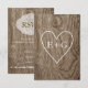 Heart with initials wood grain rustic wedding RSVP Card