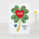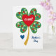This card features a large four-leaf clover centered on a white background, with each green, heart-shaped leaf filled with tiny red, white, and blue flowers and small golden starbursts that feel like little love notes tucked into a garden. In the middle sits a rich red heart ❤️, giving the whole design a cozy, affectionate focus. Across that heart, the word “aunt” appears in smooth white lettering, placed horizontally so it stands out clearly. A softly curved golden stem drops from the clover, adding a gentle, grounded finish to the layout. Near the lower-left corner, a small dark blue heart adds a quiet touch of closeness, like a friendly wink between family members. At the bottom right, the words “Mother’s Day” are written in dark blue lettering, balanced neatly against the open white space 🌼. The colored areas have a slightly textured look, and the tiny golden starbursts sparkle around the floral pattern on the clover leaves.