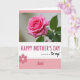 This card features a close-up pink rose at the top, with layered petals shifting from deep fuchsia to a soft blush, lit by gentle natural light that makes the flower feel tender and inviting ❤️. Green leaves frame the bloom against a softly blurred background, giving the scene a quiet, affectionate mood like a warm hug shared between close family. A thin dashed line runs across the design to separate the photo from a bright white section below. Centered in the lower area, the text “HAPPY MOTHER’S DAY” appears in dark lettering in a neat modern style, standing out clearly on the white space. Just beneath it, smaller text reading “...to my,” is placed in a lighter tone, leading the eye downward as if continuing a sweet note. The word “Aunt” sits on a soft pink horizontal band near the bottom, creating a gentle accent that feels caring and close 🌼. Off to the left of the lower section, a small stitched-look floral outline adds a delicate decorative touch. The overall layout shows the rose above, the dashed divider in the middle, and the pink name band anchoring the bottom of the card.