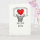 This card shows a simple basketball hoop drawn in thick, uneven black lines, with a big red heart taking the place of the backboard ❤️. The heart is rounded and eye-catching, dotted with small white polka dots that add a sweet, flirty texture 🥰. The scene sits on a wide white background that keeps everything airy and focused on the heart and hoop. The net hangs below in the same loose black line style, like a quick sketch that still feels intentional. Under the hoop, the words “OH, YOU WIN” appear in uppercase letters, placed near the bottom and written in black to match the outline. The sporty setup and the heart together suggest a gentle, teasing kind of romance, like someone happily admitting they’ve been won over. The red heart sits centered above the rim, sprinkled with evenly spaced white dots against the plain white space.