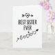 This card features a black-and-white design that feels sweet and direct. In the center, the words “BEST SISTER EVER” are written in thick, slightly uneven hand-drawn letters, all in black, making the message easy to read. Above the text, a Cupid’s arrow points across the card and goes through an outlined heart, with a smaller solid black heart sitting inside it. Below the words, a curling vine stretches side to side with tiny hearts and a few simple leaves. Some of the hearts are plain outlines, while others have little dashed marks inside, like gentle stitching details. The white background keeps everything focused on the message and the symbols of love. It’s a meaningful card to give because it celebrates a close bond and says what you might not always say out loud 🥰❤️. Hope it helps you share your Valentine’s Day sentiments.