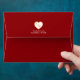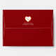 Complete your wedding stationery with white 5x7 envelopes featuring the signature hearts and blooms design on the interior liner. The outside of the envelope can be personalized with a matching heart outline containing the couple's initials, along with the return address elegantly printed below. The vibrant red and floral details inside add an extra touch of sophistication and surprise when the envelope is opened, perfectly complementing the rest of the collection.
