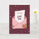 This design shows a slightly open light pink envelope holding a white note, like a secret being shared between two close hearts 🥰. Centered on the note, “14 FEBRUARY” appears in bright red lettering, with “LOVE YOU” placed just below in deep brown, giving the message a warm, intimate weight. The envelope sits against a deep maroon background that makes the pale pink and white stand out clearly ❤️. Around it, small white stars glow, mixed with tiny pink crosses, x’s, circles, and little rectangles that feel like confetti hovering in the air. The overall lighting is bright and even, as if the scene is gently lit to keep the focus on the note and its tender words. At the bottom left corner of the envelope, a soft pink flower with a yellow center rests among green leaves, while the bottom right corner holds two deeper red blooms with matching greenery. The scattered shapes and starlets are spread across the maroon backdrop, with the brightest white stars clustered near the upper area above the note.