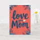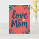 This card features the message “Love you Mom” in deep navy blue letters across the center. The lettering has a flowing, handwritten look, and it stands out strongly against a coral red background. The background also has faint vertical lines and tiny white specks scattered around, giving it a soft bit of texture. In each corner, there are dark blue flowers and leaves with thin white outlines that make the petals and shapes easy to see. The flowers include open blooms, small buds, and leafy sprigs, framing the words without covering them. A small cream-colored heart sits right after the word “you,” like a sweet little pause in the message ❤️. It feels meaningful to give because it’s simple, direct, and full of affection, making your love for Mom easy to say 🥰. Hope it helps you share Valentine’s Day sentiments with someone you care about.