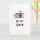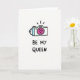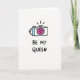 This card shows a simple drawing of a camera centered on a plain white background. The camera is outlined in black, with an easygoing, doodle-like look that feels friendly. In the middle where the lens would be, there’s a bright fuchsia-pink heart, making the whole image feel romantic ❤️. A light pastel-blue strap hangs off the side, adding a soft touch of color without taking attention away from the heart. Above the camera, a few short black dash marks spread out like a tiny flash, as if the camera is capturing a sweet moment. Under the drawing, the words “BE MY QUEEN” appear in thick black hand-lettering, slightly uneven, and placed near the bottom of the card. It’s a meaningful card to give because it’s direct, affectionate, and feels like a simple way to say “you’re special to me” 🥰. Hope it helps you share your Valentine’s Day sentiments with someone you care about.