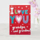 This greeting card shows a deep red background filled with small white hearts scattered all around like confetti. In the center, the main message reads “I LOVE YOU” in big, cutout-style letters with a stitched-look dashed outline. The “I” is white, the “L” is light green, the “O” is a pink heart, and “VE” appears in teal. ” appear in flowing white cursive lettering, placed under the main message. The mix of soft pastel letters against the red background feels sweet and affectionate, like a note meant to be kept and reread 🥰.
