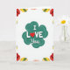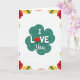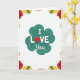 This card shows a teal-green, four-lobed shape in the center that looks a bit like a soft cloud or clover. Inside it, the words “I LOVE You” appear in white letters, with “LOVE” in all caps and “You” in a smaller, more relaxed style. The “O” in “LOVE” is replaced by a small red heart, which makes the message feel extra tender ❤️. The background is plain white, so your eyes go straight to the message in the middle. Around the edges, there’s a border of loose, watercolor-like flowers that resemble tulips and simple blossoms. The petals are red and yellow with green leaves, plus a few touches of orange, giving the card a cheerful frame without taking over the center. It feels meaningful because it’s direct, sweet, and easy to give to a partner or a close friend 🥰.