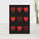 This greeting card shows a neat grid of nine red hearts set against a deep black background. Each heart keeps the same classic shape, but the inside details change from one to the next. A few hearts have thick horizontal stripes, while others use thin lines that feel more delicate. Some hearts include small heart-shaped cutouts scattered inside, and several have round holes that appear in light or heavy clusters. One heart stands out with a dotted outline, adding a softer, stitched-like look. There isn’t any text on the front, so the simple heart designs do all the talking and leave room for your own words inside. It feels meaningful to give because it says “I care” in many small ways at once, whether it’s for romance or close friendship 🥰❤️. Wishing you an easy way to share Valentine’s Day sentiments with someone special.