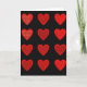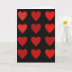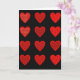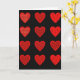 This card shows twelve deep red hearts arranged in a neat 3x4 grid on a solid black background. Each heart has its own pattern, so the set feels varied while still matching as a group. Some hearts have a plaid look, while others use diagonal stripes that add a sense of motion. A few have calm horizontal lines, and a couple include tiny star-like marks sprinkled inside. There isn’t any text on the front, so the hearts do all the talking and your note inside can carry the message. The strong red-on-black contrast makes the design feel direct and sincere, like a simple way to say “I care” without overexplaining. It’s a meaningful choice for a partner, friend, or anyone you want to remind that they’re loved ❤️🥰. Hope it helps you share your Valentine’s Day feelings in a kind, easy way.