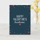 This Valentine's Day card features a deep teal-blue background that feels calm and romantic. Centered in the middle, the text reads “HAPPY VALENTINE’S handsome” in bright white. “HAPPY VALENTINE’S” is in all caps with simple, straight lettering, while “handsome” is written in a smooth, flowing cursive style just beneath it. Small hearts in red and white are scattered around the edges like little bits of confetti, guiding your eyes back to the message. A single red heart sits centered under the word “handsome,” like a sweet finishing touch ❤️. The mix of strong lettering and softer cursive makes it feel both confident and affectionate, which works well for a partner or someone you care about 🥰. It’s an easy way to say “I’m thinking of you” and share Valentine’s Day sentiments.