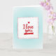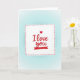 This card features a soft sky-blue background that fades from lighter to slightly deeper blue. In the center, there’s a white square with gently rounded corners, set off by a light shadow that makes it look slightly raised. A red dashed line runs around the edge of the square, like neat little stitches. The words “I love you” appear in the middle in red, written in a casual handwritten letter style. A small red heart sits just above the word “love,” and a thin red swoosh underlines the message near the bottom of the square. The simple colors and clear layout keep the focus on what you want to say, making it feel honest and close ❤️. It’s a sweet way to show romance or caring friendship, and it helps you share Valentine’s Day sentiments 🥰.