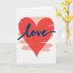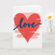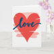 This card features a large red heart centered on a bright white background, immediately drawing your eyes in. The heart has visible horizontal brushstroke texture, giving it a slightly rough, painted look that feels intimate and close, like a note left for someone you adore 🥰. Across the middle of the heart, the word “love” sits prominently in deep navy blue, written in flowing lettering that follows the curve of the shape. The navy text contrasts strongly against the red, making the message easy to spot without overpowering the artwork ❤️. Behind the heart, faint pink brushstrokes peek out in a few places, adding gentle depth like a soft blush around the main symbol. The layered paint textures and simple layout create a quiet, romantic focus, as if the heart and the word are leaning toward each other on the page. The heart stays centered, with the navy “love” stretching across its middle and pale pink strokes lightly feathered around the edges.