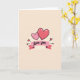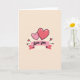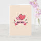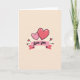 This greeting card shows two layered hearts in the center, outlined in black against a creamy beige background. The front heart is a deeper rose red, and it overlaps a softer pastel pink heart behind it, giving the design a close, cozy feel. A faint glow around the hearts adds a gentle warmth without being too much. Below the hearts, a medium pink banner stretches across with the words “love you” written in smooth, flowing black lettering. Small outline hearts and simple Cupid-style arrows sit near the banner, pointing your attention back to the message. The banner has a light cross-hatch texture that makes it feel a little more special and thoughtful. It’s an easy card to give when you want to say you care in a straightforward, loving way 🥰❤️.