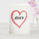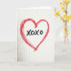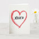 This card shows a large red heart drawn with several overlapping marker-like lines on a pale, off-white page. The heart sits right in the center, and the slightly uneven edges make it feel like a quick, honest note from someone who means it. Inside the heart, the text “XOXO” is written in black, thick, casual lettering that looks like it was written by hand, placed squarely in the middle. Behind the drawing, you can faintly see small printed words showing through the paper in different languages, like the heart was drawn on a page from a book. That little background detail adds a quiet, everyday setting and makes the message feel even more real. The simple red-and-black contrast keeps your attention on the affection being shared, without needing anything else. It’s a meaningful card to give when you want to say “I care about you” in a direct, warm way 🥰❤️. Hope it helps you share your Valentine’s Day sentiments.