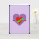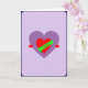 Designed with a soft lavender background, this card sets a calm scene that still feels close and affectionate ❤️. A deep indigo frame with a subtle herringbone texture and rounded corners neatly surrounds the artwork. In the center, interlocking shapes form a large solid purple heart, like a steady base for a growing bond. A smaller red heart sits on top, drawing the eye with the kind of warmth you notice in a tender glance between two people. A lime-green banner runs diagonally across the hearts, carrying a single sweet word in red cursive lettering. Two crimson arrows sit to the left and right, angled inward as if guiding attention back to the shared connection 🌼. The cool purples balance the reds and green, giving the design a gentle contrast without feeling loud. The indigo border encloses the centered heart stack, with the green banner cutting from lower left to upper right across the red heart.