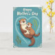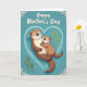 Designed with two friendly, human-like river creatures at the center, the scene shows a larger caregiver gently cradling a smaller companion as they lean close with rosy cheeks and wide, content smiles ❤️. Their bright eyes and relaxed posture suggest a tender bond, like a quiet moment of affection between loved ones. A glowing heart-shaped outline surrounds them, giving the cuddle extra focus and hinting at a watery setting. Behind them, a textured teal background suggests calm underwater depth, with soft shading that feels slightly vintage. Curving green water plants drift along the sides, and small white bubbles float upward, adding motion without distracting from the embrace 🌼. Decorative white flourishes sit near the corners like delicate trim, framing the illustration in a neat, card-style layout. Across the top, a celebratory message appears in flowing white lettering, centered above the heart outline. The heart outline looks luminous against the teal field, with bubbles and green strands scattered around the hugging pair.