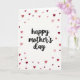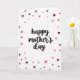This card features a calm white background with “happy mother’s day” placed prominently in the center in flowing black lettering. Around the words, many small and medium heart shapes gather like a loose frame, creating the look of an affectionate hug around the message ❤️. The hearts shift between deep red and soft blush pink, with slight changes in size that make the border feel natural rather than rigid. A few hearts sit closer to the text while others drift outward, like little notes of care floating in from the edges. The raised look of each heart gives a gentle 3D effect, and their tiny shadows add depth against the bright white space. The overall layout feels romantic and friendly, as if the hearts are quietly leaning in toward the message 🌼. The black text stays crisp and centered while the red and pink hearts scatter around it in an airy, uneven ring.