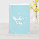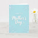 This greeting card features a calm pastel blue background that feels like a quiet spring morning, setting a gentle, affectionate tone ❤️. Centered near the top is the word “HAPPY” in white, all caps, using a simple sans‑serif style with a faint shadow. Directly beneath it, “Mother’s Day” appears larger in white with a flowing, cursive-like look, also softly shadowed so the letters seem to lift slightly from the page. The generous spacing around the text gives the layout an airy pause, like a warm hug held just a moment longer. Around the edges, faint floral accents suggest closeness and care, as if someone quietly tucked flowers into the corners for a loved one 🌼. The decorations stay light and nearly translucent, letting the message remain the main focus while adding a tender, romantic softness. In the upper and lower corners, small four‑petaled blossoms and feathery leaf shapes fade gently into the blue.