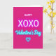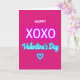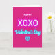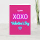 This greeting card features a solid bright fuchsia background that instantly sets a fun, romantic mood ❤️. At the top, the word “HAPPY” is written in small white letters with a simple, sans-serif look. Centered in the middle, “XOXO” appears in large white capital letters that feel confident and affectionate. Just below that, “Valentine’s Day” is written in a flowing cursive style with a soft cyan glow, like a neon sign. Near the bottom, there’s a thin cyan heart outline that also glows, tying the whole design together. The strong pink and cool blue contrast makes the message easy to read and gives the card a sweet, modern feel. It’s a meaningful card to give because it says a lot with just a few words—hugs, kisses, and a clear reminder of the day 🥰. Hope it helps you share Valentine’s Day sentiments with someone you care about.