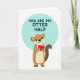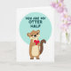 This card features a cute cartoon otter in warm brown with a light beige belly, standing upright and holding a ruby-red heart close to its chest ❤️. Its big black eyes and small smile give it a tender, affectionate look, like it’s quietly saying “I’m yours” without needing to speak. Behind the otter, a large teal circle creates a calm backdrop that makes the heart and fur tones stand out. Inside that teal circle, the phrase “YOU ARE MY OTTER HALF” appears in bold, sans-serif lettering, set in a dark ink for easy contrast. The words sit above and around the otter within the circle, framing the character like a gentle spotlight on a sweet connection 🥰. A white background keeps everything airy and focused, with just a touch of soft shading beneath the otter for a little depth. The teal circle is softly shaded, while the heart is a rich red with smooth, simple edges.