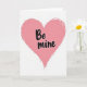 This greeting card shows a large soft pink heart centered on a white background, with visible brush-like texture around the edges. The heart looks slightly imperfect in a sweet way, which makes it feel more human and caring. In the middle of the heart, the words “Be mine” appear in thick black lettering that looks like it was written by hand. The text sits right across the center, and there’s a tiny black heart used as the dot over the “i” in “mine.” A faint shadow around the letters helps the message stand out without taking away from the simple look. The whole design feels direct and affectionate, like a quiet ask that’s easy to mean ❤️. It’s a meaningful card to give when you want to be clear about your feelings, whether it’s romance or a close bond 🥰, and it’s a friendly way to share Valentine’s Day sentiments.