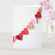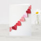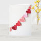 This greeting card shows a diagonal garland of paper hearts stretching from the upper right down to the lower left on a bright white background. The hearts come in shades of soft pink, rose, and deep red, and each one is folded down the middle so it stands up slightly and casts a small shadow. A thin thread peeks out in places, making it feel like the hearts are strung together and meant to be shared. There are no characters here, just simple heart shapes that still feel full of affection and closeness. The mix of reds and pinks gives a gentle romantic feel without being too much 🥰. There isn’t any text printed on the front, so the design leaves room for your own words inside ❤️. It’s a meaningful card to give when you want to show love or friendship in a quiet, sincere way, and it’s perfect for sharing Valentine’s Day sentiments.