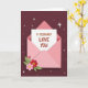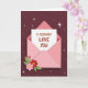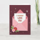 This design shows an open pastel pink envelope centered on a deep burgundy background, with soft shadows that make it look like layered paper. Tucked inside is a bright white card that feels like it’s being gently revealed, as if someone is about to pass it to a loved one 🥰. Across the card, the text “14 FEBRUARY LOVE YOU” sits in the middle in warm rust-colored lettering, standing out clearly against the white. The background is sprinkled with small white stars and tiny glowing dots, giving the scene a calm night-sky look that frames the message with quiet romance ❤️. At the lower left corner of the envelope, a cluster of cutout flowers adds a sweet, thoughtful touch, like a little bouquet placed there on purpose. One flower is a rich red, another is soft pink, and a small bud peeks out beside them, all nestled among green leaves. The envelope’s flap and edges are defined by subtle highlights, while the stars and dots drift around the center, leaving the card and its rust-colored words as the focal point.