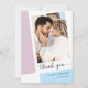 Share your appreciation in style with our Heartfelt Gratitude Wedding Thank You Card — a perfect blend of personal sentiment and modern elegance. This customizable card features your romantic photo as the focal point, framed by a soft geometric design in dreamy lilac and baby blue tones. The elegant black script beautifully delivers your message of thanks, making it both heartfelt and visually striking.