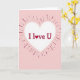 This card shows a large white heart centered on a soft pastel pink background, setting a gentle, romantic mood. Inside the heart, the text reads “I love U” in deep red letters that look slightly textured, like they were drawn with a marker. The “o” in “love” is replaced by a small solid red heart, which stands out right in the middle and makes the message feel extra sweet ❤️. Around the white heart, thin lines radiate outward in a loose ring, with shades ranging from dark maroon to light rose. The lines aren’t perfectly even, which gives the design a human, heartfelt feel rather than something too perfect. The pink background has a faint grainy look that adds a little depth without distracting from the message. It feels meaningful to give because it’s simple, direct, and says “I love you” in a way that’s easy to believe and easy to keep 🥰.