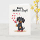 This card shows a cute, short-legged cartoon dog with glossy dark fur and wide, friendly eyes, standing against a creamy off-white background. Tan markings warm up its muzzle, chest, and paws, and its head tilt and open smile with a pink tongue give it the kind of eager look you’d share with a close friend ❤️. The dog wears small pink boots and lifts a pink, heart-shaped treat on a stick, finished with a tiny bow, like it’s offering a sweet little gift. From that treat, several small ruby-red hearts float upward to the left in a gentle trail, adding a romantic, affectionate motion to the scene. Across the upper area, large black text is placed prominently, acting as the main message and balancing the illustration below. The limited colors—deep black, soft tan, bright pink, and red—keep the focus on the dog’s tender gesture and the floating hearts 🌼. The heart trail climbs diagonally into the open space near the top-left, while the dog remains centered beneath the bold black lettering.