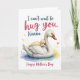 This card features a white adult water bird gliding across a softly painted pool while carrying its fluffy yellow chick on its back, the chick leaning into the adult’s neck with a trusting, affectionate nuzzle ❤️. The scene is set against gentle washes of blue and purple that suggest calm water and a quiet morning light. Small heart shapes float near the pair, adding a romantic, caring touch to the moment without overpowering the artwork. Near the top, a large hand-lettered message sits centered, colored in a smooth gradient that shifts from deep blue into soft pink. Near the bottom, a smaller line of text appears centered in a warm gradient tone, echoing the colors above and balancing the layout 🌼. The adult bird’s bright white feathers stand out against the cool background, while the chick’s golden-yellow down adds a cozy contrast. Fine watercolor edges and light pooling of pigment give the water a dreamy, slightly blurred look. Tiny hearts hover around the birds, and the blue-purple pool fades gently toward the edges of the card.