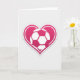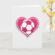 This design shows a classic black-and-white soccer ball tucked snugly inside a hot pink heart, like it’s being held close with real affection ❤️. The heart has a thin white border that makes it stand out, giving the center image a gentle lift from the background. Behind it all is a soft light gray field that keeps the focus on the ball and heart, letting the contrast do the talking. There’s no headline or message anywhere, which makes the image feel like a quiet, direct way to show devotion—more like a warm look than a loud statement 🥰. The crisp polygon panels on the ball add structure, while the rounded heart shape softens the scene into something more romantic and friendly. A faint shadow around the heart adds a touch of depth, like a sticker placed neatly on the page. The only “text” element is the absence of lettering, leaving open space all around the centered icon on the pale gray background.
