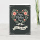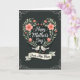 This card features a deep charcoal background that gives the scene a calm, intimate mood. At the center sits a heart-shaped wreath made of soft coral flowers and sage-green leaves, dotted with tiny white specks like dewdrops 🌼. Inside the floral heart, the words “Happy Mother’s Day” appear in flowing white lettering, centered and easy to read. Near the bottom, two stylized birds with creamy white bodies and gray wings face each other closely, their beaks almost touching as if sharing a quiet moment ❤️. One bird holds a small red heart between them, adding a gentle romantic or affectionate touch to the pose. Beneath the birds, a cream banner curves across the card with “Dear Step Mom” written on it in a matching white, flowing style. A muted silver filigree border frames the entire design, with delicate curls and loops tracing the edges. The coral blooms cluster most densely at the top curve of the heart, while the sage leaves fan outward along both sides.