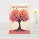 On the front of the card is a stylized tree centered on the page, with a leafy top shaped like a clear heart. The leaves blend deep pink, red, orange, and yellow, giving the heart a warm, glowing look. A dark brown trunk reaches upward into the heart shape, and thin roots spread out across a rosy ground near the bottom. A few loose leaves rest at the base, adding a natural, lived-in touch. The background fades from creamy off-white at the top to soft blush pink at the bottom, which makes the whole scene feel gentle and calm. ” in flowing cursive-style lettering, placed above the heart-shaped tree. It feels meaningful because the heart in the branches and the steady roots together suggest lasting love and gratitude for someone who’s always been there 🥰❤️.
