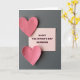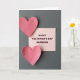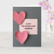 This greeting card shows two paper hearts in a dusty rose pink, placed on a dark gray background. One heart sits near the top-left corner and the other near the bottom-left, both with slightly uneven edges and a visible paper texture. Between them is a soft peach-pink rectangle that looks like a small note card. On that note card, the words “HAPPY VALENTINE’S DAY GRANDMA” appear in dark maroon letters, set in a simple, easy-to-read style and centered on the card. The gentle lighting creates soft shadows, so the hearts and the note card feel real and touchable. It’s a thoughtful way to show love and appreciation for a grandma, mixing warmth and closeness in a quiet, sweet scene 🥰. It also works well for anyone who wants to say “I care about you” in a straightforward, loving way ❤️.
