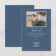 Share a heartfelt thank you with this elegant navy wedding photo design featuring a clean modern layout and classic serif typography. The deep blue border frames your favourite couple portrait for a timeless, romantic look. Perfect for beach, coastal, or classic weddings with a calm, refined mood.