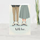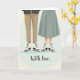 This card shows the lower halves of two skaters standing close together, their bodies angled as if they’re about to glide off hand in hand 🥰. One wears warm brown trousers while the other’s sage-green skirt drapes softly beside them, creating a gentle contrast that feels quietly romantic. Both have cream-colored ice skates with neat black laces, and the blades catch the light like thin silver lines. The background fades from cool mint to warm cream, with soft, out-of-focus sparkles scattered like distant rink lights or falling snow ❤️. That hazy glow keeps the scene private and intimate, letting the closeness of their stance do the talking. Along the bottom, the words “With love…” appear in a flowing handwritten style in a dark tone that stands out against the pale ground. The overall palette stays muted and cozy—greens, browns, and whites—so your eye rests on the skates and the gentle overlap of their silhouettes. Tiny bokeh dots shimmer across the upper background above the skaters, floating over the smooth gradient wash.