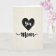 This Mother's Day card centers on a large black heart with slightly uneven, brushy edges that feels like a quick, loving mark made in the moment ❤️. Inside the heart, the word “You” sits in white, flowing lettering, standing out sharply against the dark shape. Just below the heart, “mom” appears in black, smooth cursive-style lettering, placed like a soft reply to the word above. The tight spacing between the heart and the text creates a close, affectionate connection, like two people leaning in toward each other. Everything rests on a pale, lightly grained background that resembles light wood, adding a cozy, homey setting 🌼. The limited colors—black, white, and warm cream—keep the focus on the tender contrast between the strong heart shape and the gentle letterforms. The heart’s edges stay a little rough and irregular against the softly textured, light-wood backdrop.