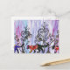 An original, mixed media, cat design created using collage, drawing and painting techniques. A great postcard for cat lovers.