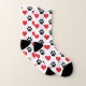 Red hearts and black paws pattern socks