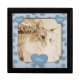 Honor the memory of a beloved animal family member with this decorative keepsake box. A pale blue frame with deep blue paws surrounds a photo of your pet that you add. Love hearts at both corners and at the bottom edge contain customizable text that can easily be changed to your own pet’s information. From my original digitally created image.