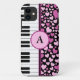 Cool and cute pink hearts and piano custom monogram iPhone 4/4S Case-Mate cases for piano players, pianists and keyboard players. Unique and original piano iPhone cases and gifts for birthdays, Valentine's Day,Christmas or any occasion.
