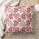 A chic, romantic Throw Pillow or Cushion, with a pattern of hearts filled with various 'Hearts and Roses' coordinating patterns. Part of the Posh & Painterly 'Hearts & Roses' collection.